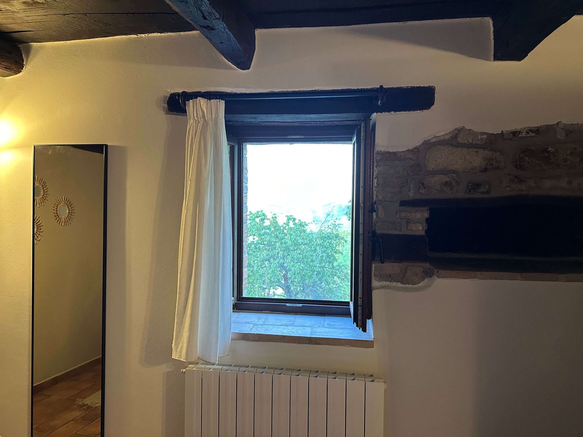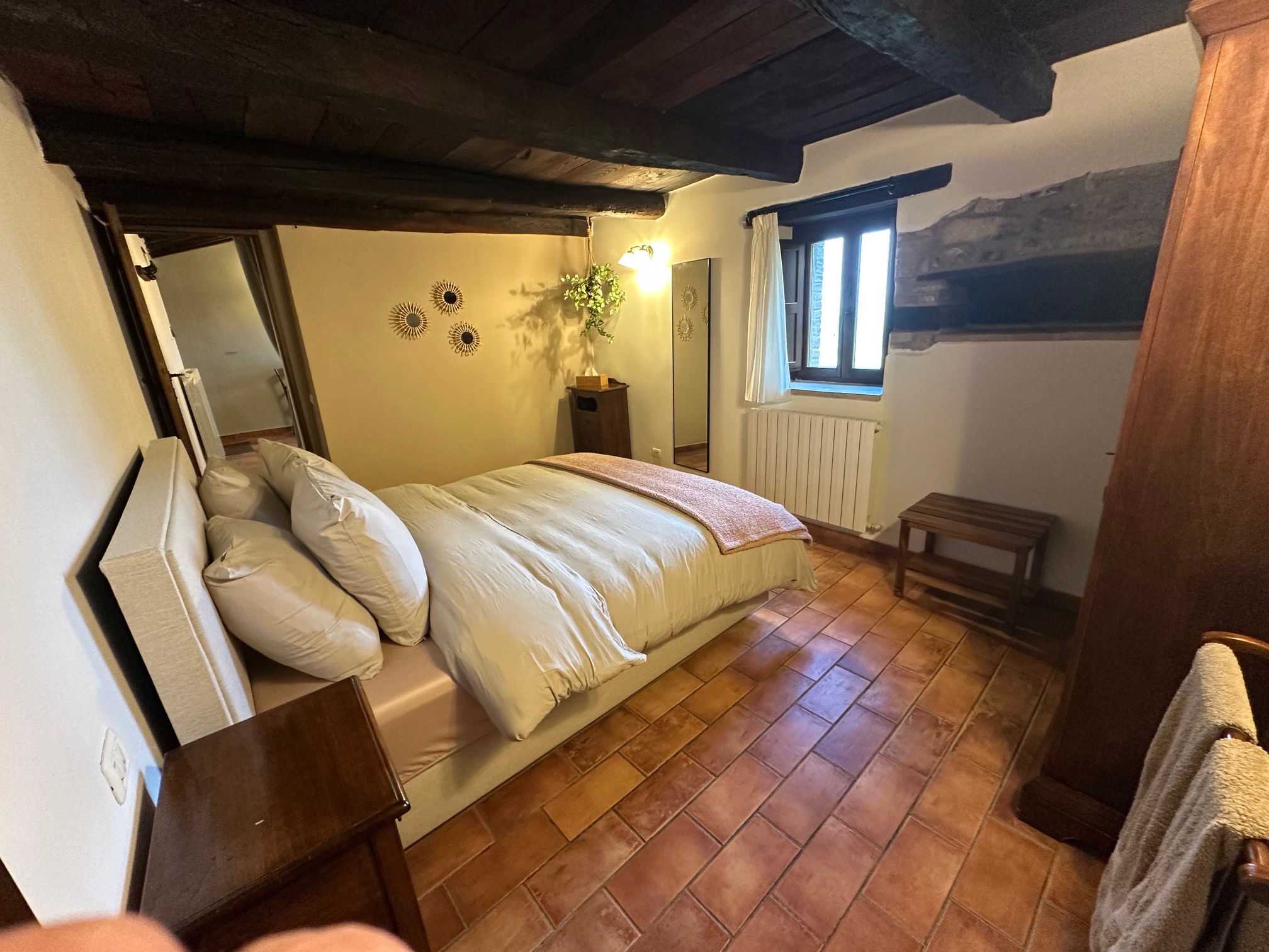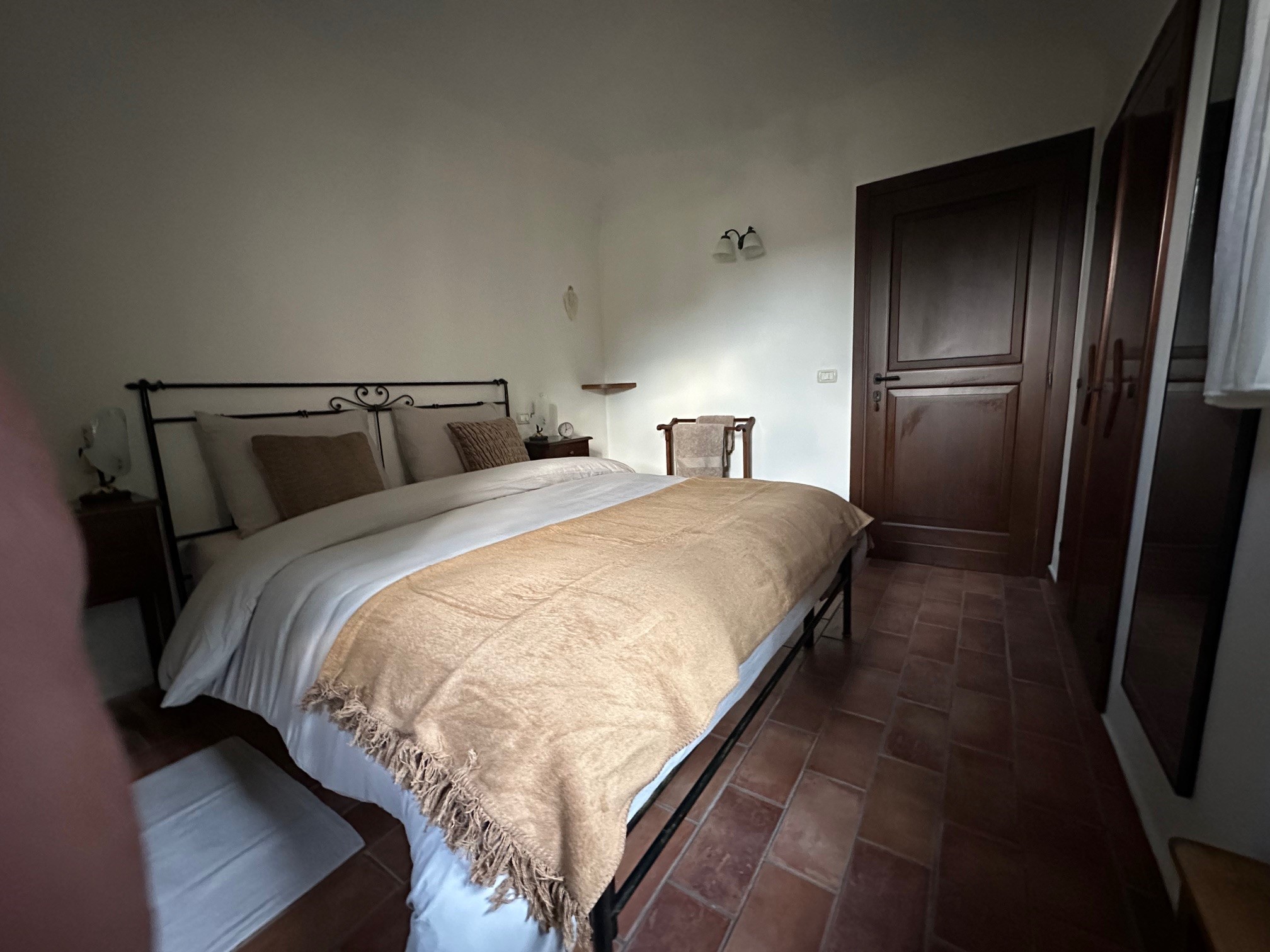 Deze charmante ruime kamer heeft een queensize boxspring, een gezellig zitje en een badkamer ensuite. Tevens heeft Il Ristoro een eigen overdekt terras met uitzicht op het dal.