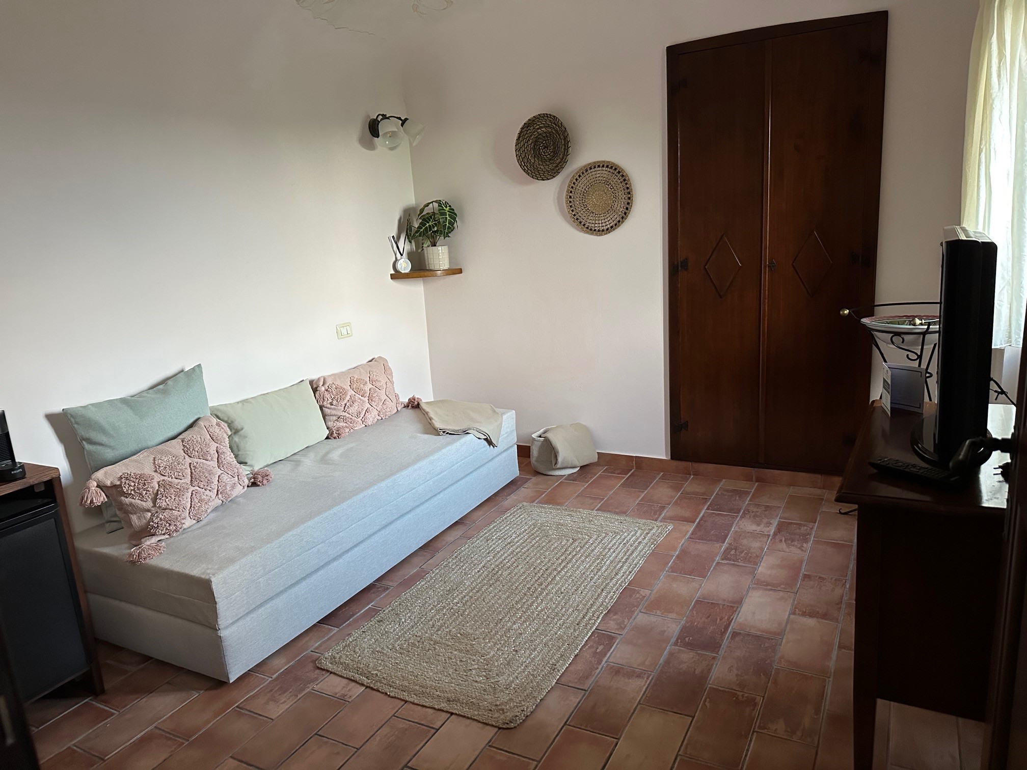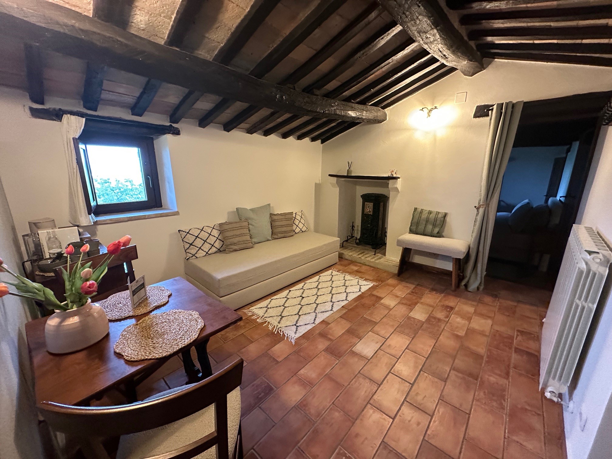 Deze suite bevindt zich op de eerste verdieping van het oude klooster. La Collina bestaat uit een gezellige woonkamer met plafondbeschildering, een slaapkamer met authentiek bed en een badkamer. Het daybed in de woonkamer is ook geschikt voor een derde gast.*